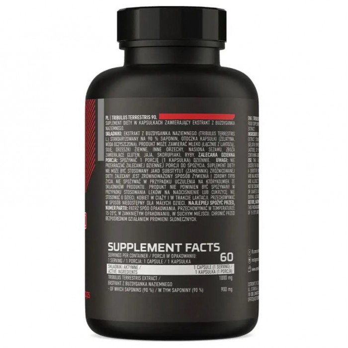 OstroVit Tribulus Terrestris 90 это передовой продукт, который повышает уровень собственного тестостерона в организме, так же стимулирует мышечный рост и способствует сжиганию подкожного жира. Увеличение уровня тестостерона и сжигания жира возможно благодаря содержанию высокого уровня сапонинов в OstroVit Tribulus Terrestris 90. Экстракт Tribulus Terrestris стимулирует синтез тестостерона в организме и способствует снижению катаболического влияния на мышечную ткань. Данная добавка содержит в одной капсуле 1000 мг действующего вещества Tribulus Terrestris.