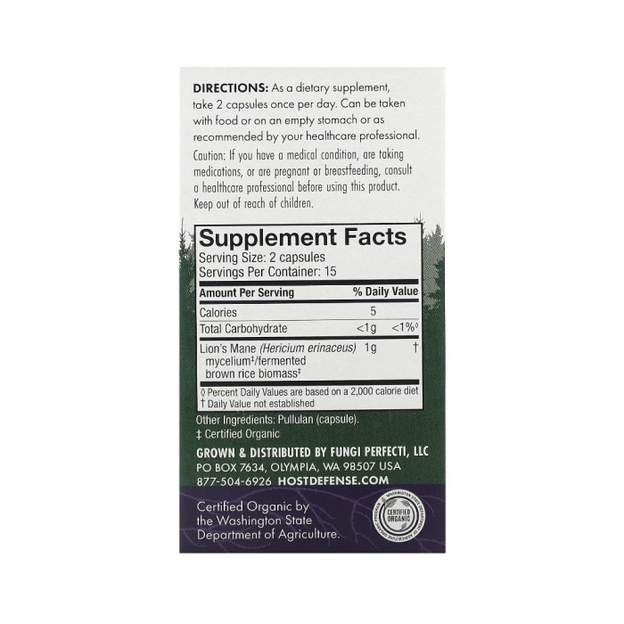 Lion’s Mane від Host Defense— це добавка, що містить міцелій гриба Їжовик гребінчастий (відомий як Lion’s Mane або лев’яча грива).