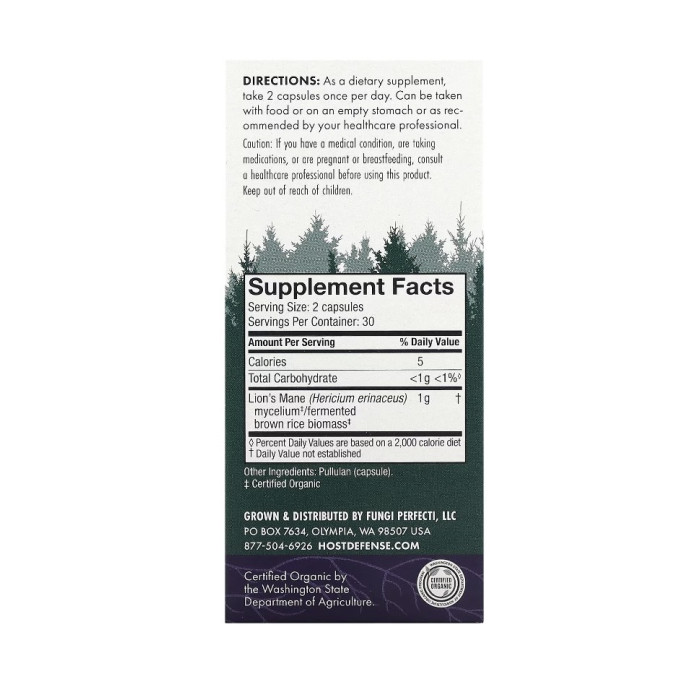 Lion’s Mane від Host Defense— це добавка, що містить міцелій гриба Їжовик гребінчастий (відомий як Lion’s Mane або лев’яча грива).