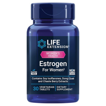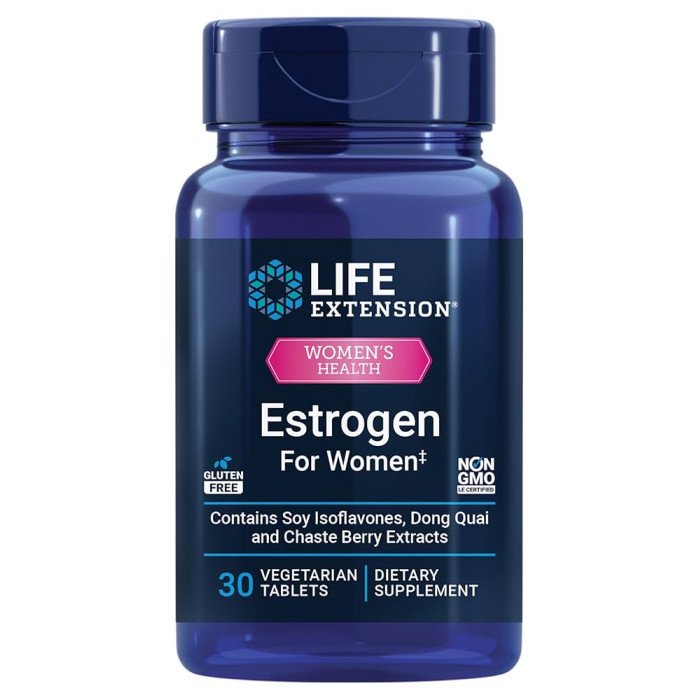Life Extension Estrogen For Women – це добавка на рослинній основі, спеціально розроблена для підтримання здорового метаболізму естрогену та полегшення поширених симптомів менопаузи, таких як приливи та нічна пітливість. Цей продукт містить ізофлавони сої та потужні рослинні компоненти, серед яких концентровані екстракти хмелю, брокколі, солодки, витекса, донг квая та інші.