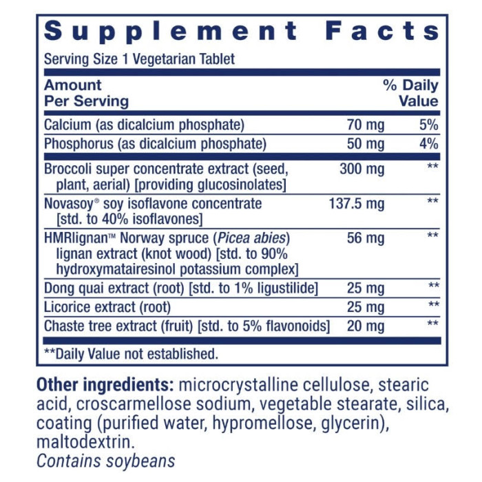 - Продукт містить концентрований екстракт брокколі, який стимулює здоровий метаболізм естрогену.