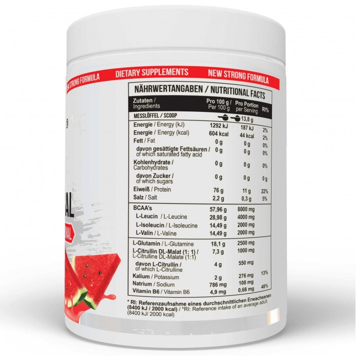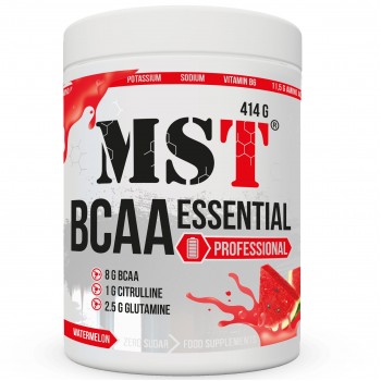 MST® BCAA Essential Fermented Professional є комплексом незамінних амінокислот з розгалуженим ланцюгом, з додаванням амінокислот для регенерації — L-глютаміну та L-Цитруліну. Додатково BCAA ESSENTIAL PROFESSIONAL збагачений вітаміном групи В – В6, калієм та натрієм, які посилюють дію основних компонентів та підтримують організм після тренувань.