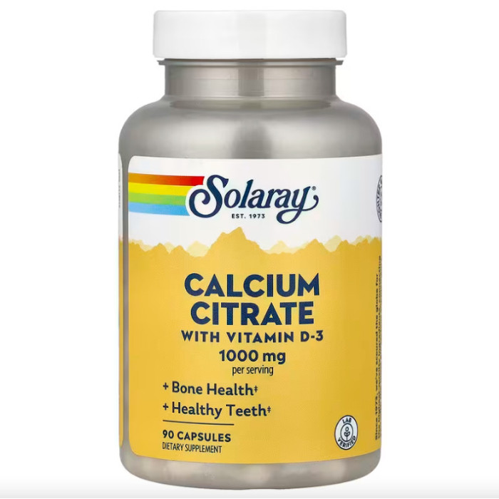 Solaray Calcium Citrate with Vitamin D-3 1000 mg (90 caps) — це комплексна харчова добавка, що поєднує кальцій у формі цитрату та вітамін D3. Така комбінація створена для підтримки здоров’я кісток, зубів і нормального функціонування м’язів.