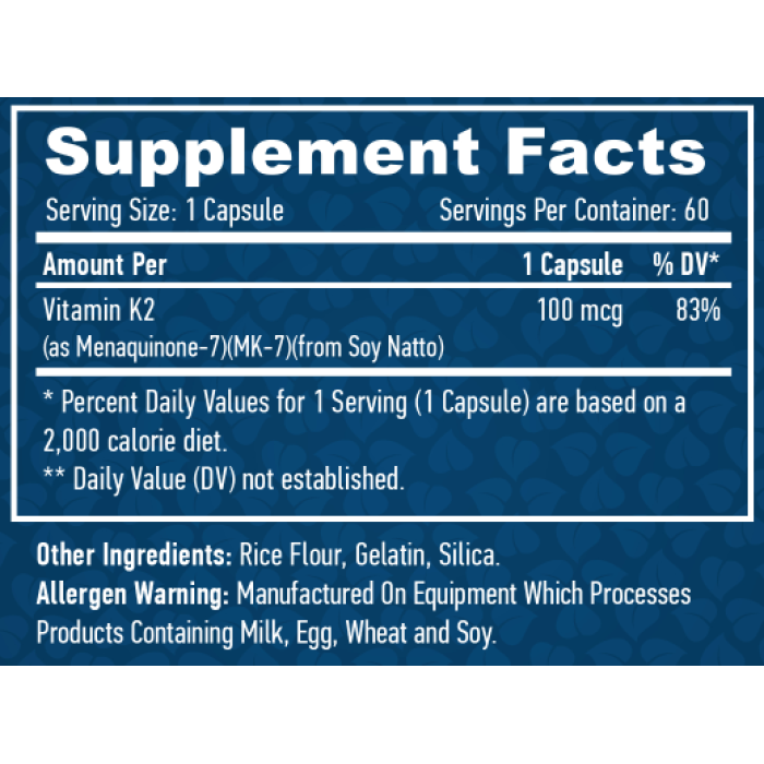 Haya Labs Vitamin K2-MK7 – це біологічно активна добавка, що містить 100 мкг вітаміну K2 у формі MK7, однієї з найбільш легко засвоюваних і ефективних форм цього вітаміну.