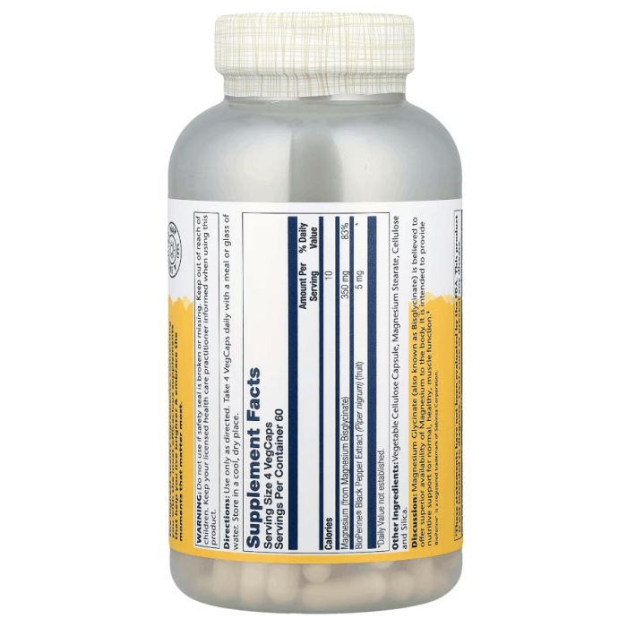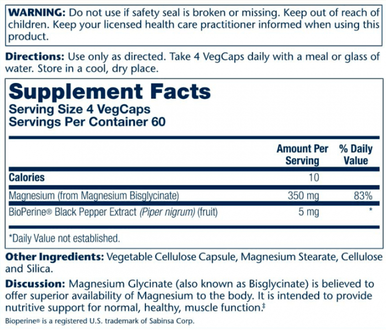 Solaray Magnesium Glycinate — це сучасна форма магнію з високою біодоступністю, створена для ефективної підтримки нервової системи, м’язів та енергетичного балансу організму. Продукт належить до преміального сегменту магнієвих добавок, де ключовий акцент зроблено на максимальному засвоєнні та мінімальному навантаженні на шлунково-кишковий тракт.