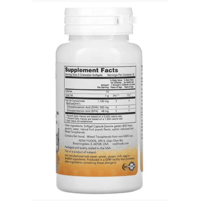 Now Foods Kid's DHA — это специально разработанная детская добавка с омега-3 жирными кислотами, в частности DHA, которая критически важна для развития мозга, зрения и нервной системы. Продукт представлен в форме жевательных капсул в виде рыбок с приятным фруктовым вкусом, что делает его удобным и привлекательным для детей.