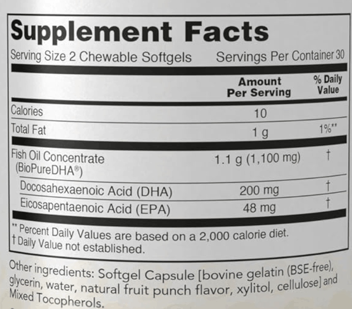 Продукт изготовлен из качественного рыбьего масла и проходит контроль качества, что обеспечивает чистоту и безопасность детского организма.